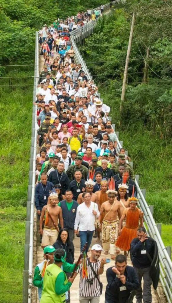 “El gobierno ha dicho: no matar, no desaparecer. Ha convocado a cuanto armado haya en Colombia a pensar en la paz, a sacarle el bulto a la autodestrucción como nación. Los hemos convocados desarmados a que participen en los diálogos regionales para hacer el plan de desarrollo. No queremos diálogos regionales de burocracias populares, o politiqueras. Lo que queremos es millones de personas saliendo a la plaza pública, como lo hicimos en campaña, pero ya no para elegir un candidato sino para decidir como es el territorio que queremos, construir una visión común del territorio a pesar de la diversidad y que esos armados sepan que entonces si dejan las armas, pueden ser constructores y constructoras de esa visión común de un territorio que pueda progresar de acuerdo a la cultura y a la manera de pensar diversa del propio pueblo” (Petro ante la Minga Indigena-12/10/22)